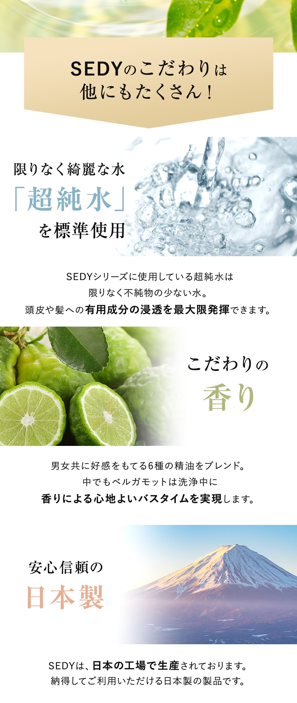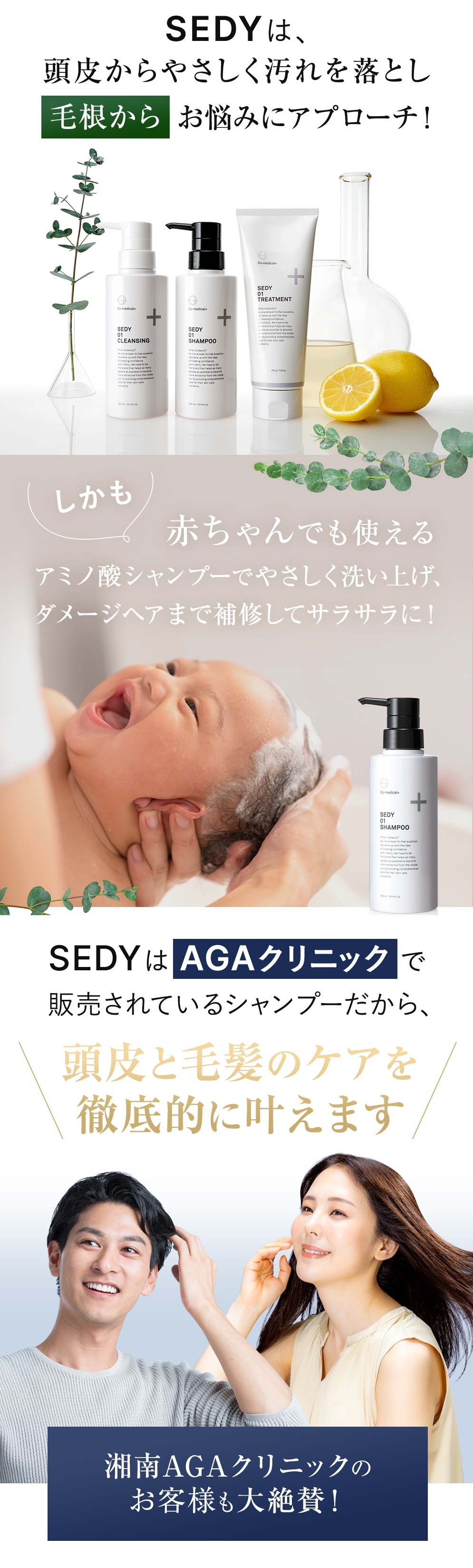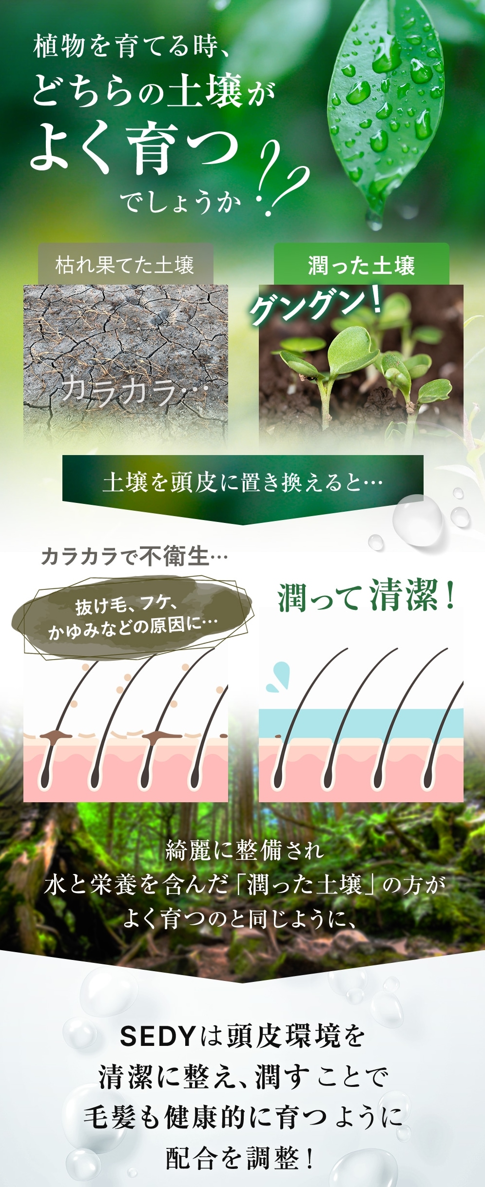SEDY クレンジングは、植物由来の洗浄成分で頭皮の汚れや皮脂を浮かせて落とし、植物由来成分を補給しながら洗い上げるクレンジングシャンプーです。