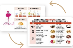 さらに、外出先でも手軽にチェックできる外食ブックや、食べる順番をチェックできるカードサイズの持ち歩きカードなど、管理栄養士が普段の食事傾向を分析した食生活サポートセットもついており、充実の内容です。