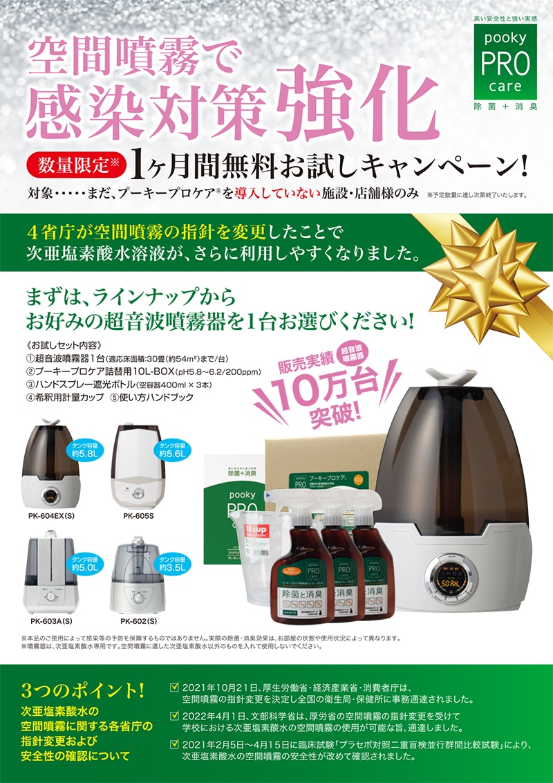 【感染対策に】プーキープロケア空間噴霧器お試しキャンペーン