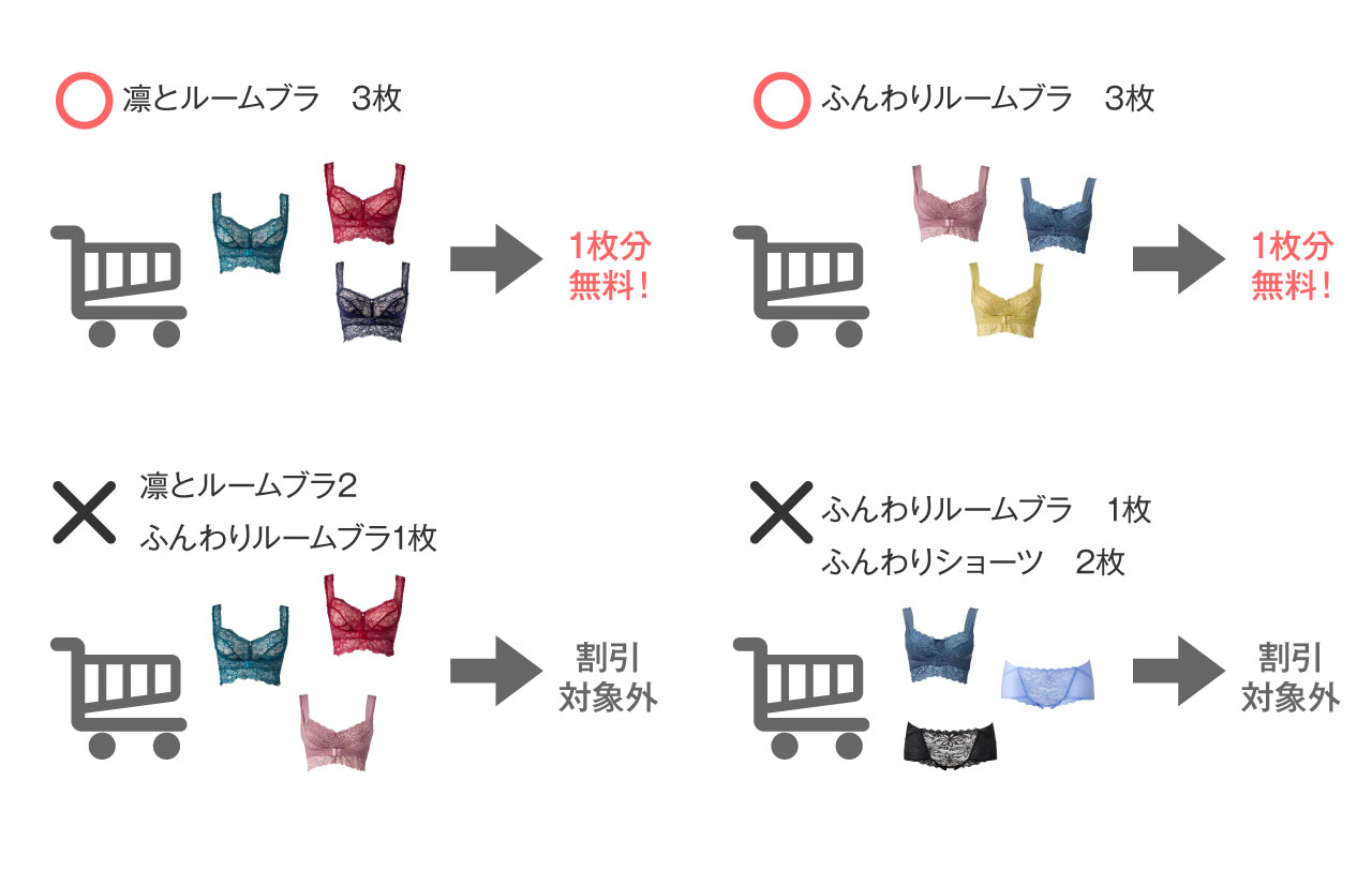 凛とルームブラ、ふんわりルームブラ/ブレスの組み合わせは対象にならないのでご注意ください。