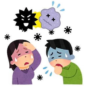 これらのウィルスや病原菌は肉眼で確認できませんが、人体に侵入、定着し増殖することにより水疱、発疹、発熱や下痢などを引き起こします。