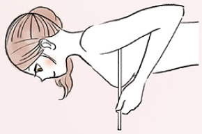 次に、お辞儀をするように90度に体を傾け、メジャーがトップと背中にかけて垂直になるように調整します。メジャーの位置がずれないよう注意しましょう。