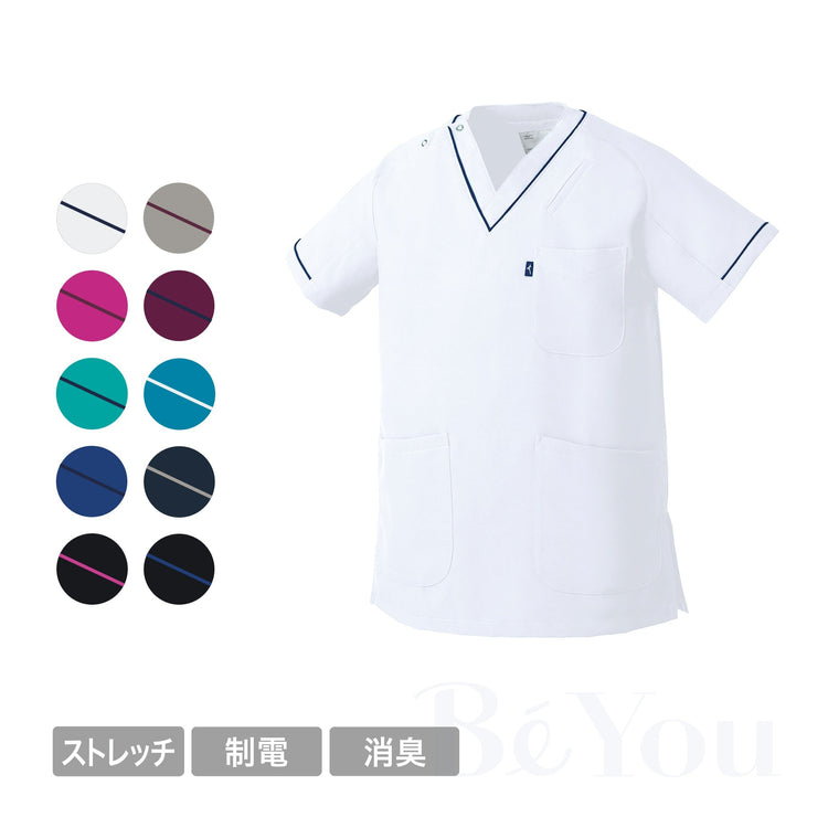 左胸ポケット、両脇ポケット、 両脇スリット、脇下制電消臭テープ付
