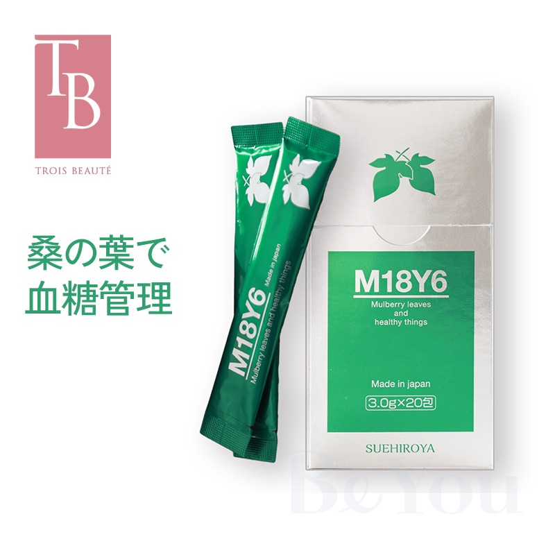 1包3.0g中、桑の葉「Mulberry(マルベリー)」を1.8gと酵母「Yeast(イースト)」を0.6g配合したことから【M18Y6】と命名。さらに大麦若葉を加え全体の9割を機能成分として処方しました。桑の葉に含まれるイミノシュガーやビタミン、アミノ酸に、酵母と大麦若葉を組合せることで、注目度の高い「免疫」「腸活」「菌活」「美肌」「マルチ栄養素」「糖の管理」と、毎日簡単に摂れる多機能のサプリメント配合の青汁です。水などに溶かして日常の飲み物としてご利用ください。